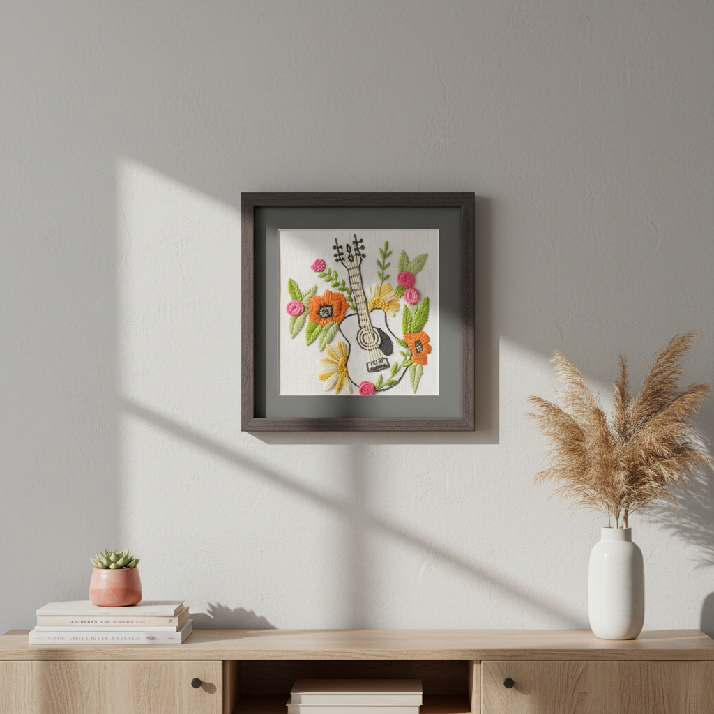 Hand Embroidered Guitar Wall Art, where music meets artistry in every stitch. Crafted with love and skill, each piece features a beautifully embroidered guitar, intricately detailed to capture the spirit of musical passion.