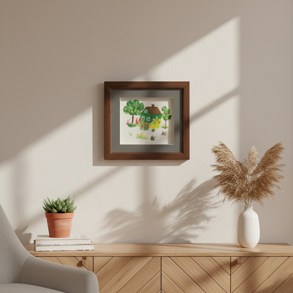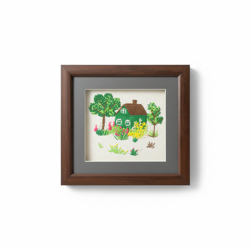 Bring the rustic charm of handcrafted art into your home with our Hand Embroidered Hut Wall Hanging. Skillfully embroidered with intricate detail, each piece depicts a quaint hut nestled in serene surroundings, evoking a sense of cozy tranquility.